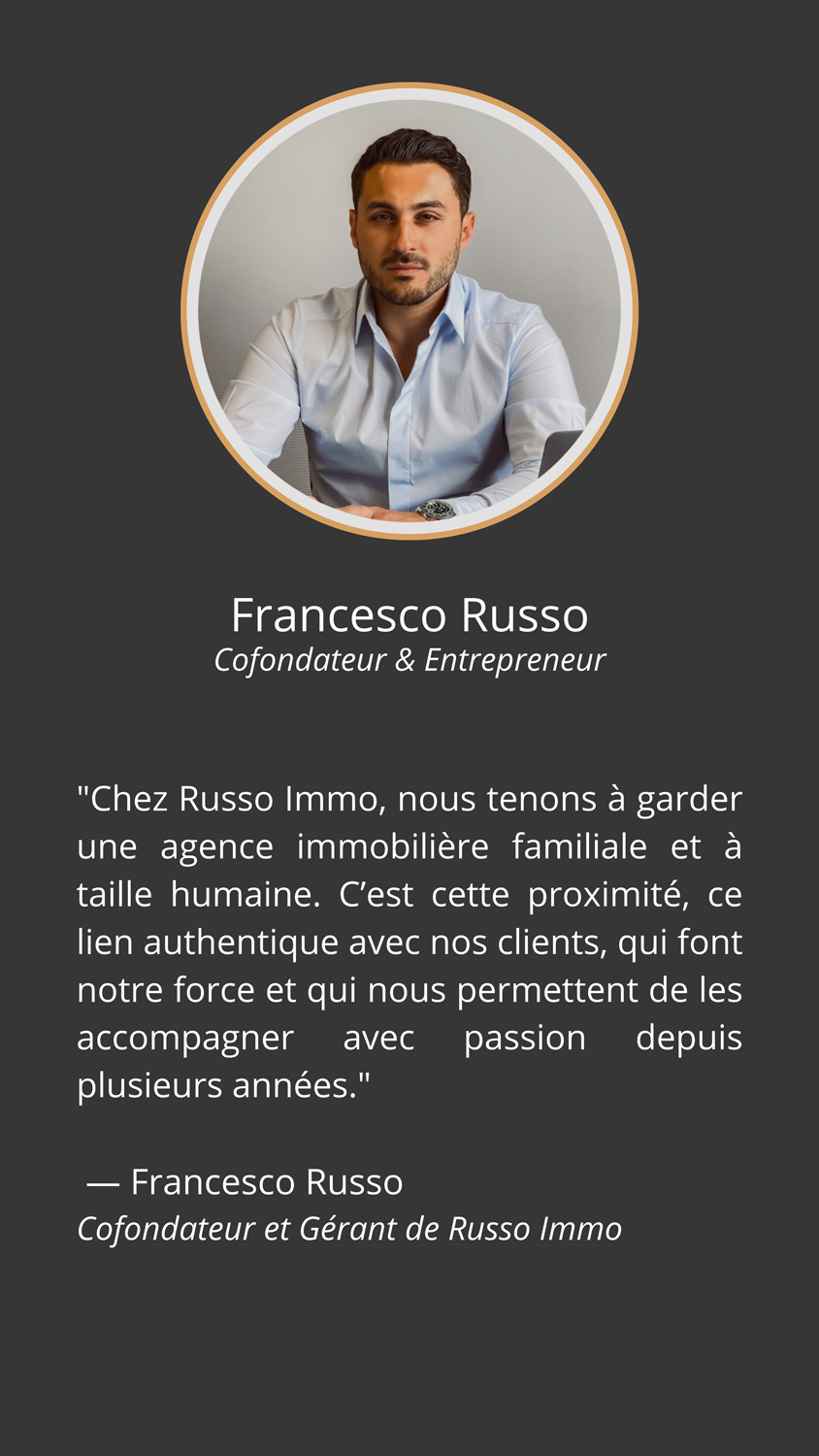 Parce qu’un projet immobilier est bien plus qu’une simple transaction, c’est une aventure humaine et un projet de vie. Chez Russo Immo, nous mettons toute notre passion, notre engagement et notre expertise à votre service.