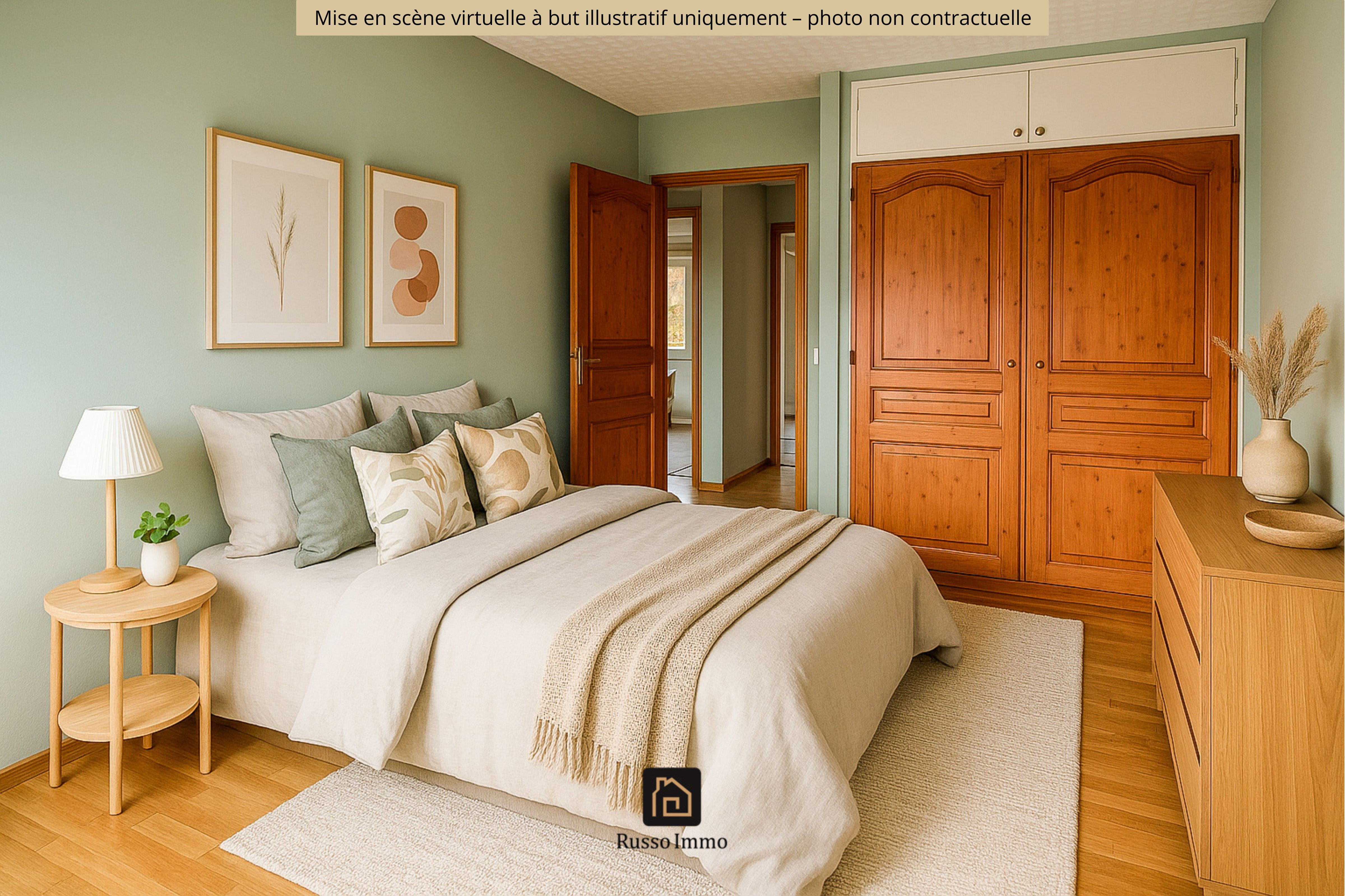 L’appartement s’ouvre sur une entrée avec placard aménagé, prolongée par un large couloir spacieux qui dessert les différentes pièces. La pièce de vie, généreusement exposée plein sud, offre un bel espace de réception et donne accès à un balcon ensoleillé. La cuisine, séparée et entièrement équipée, bénéficie d’une vue magnifique sur les montagnes, apportant une touche de charme supplémentaire au quotidien. Côté nuit, trois chambres avec rangements intégrés (placards aménagés avec penderies et étagères) assurent confort et fonctionnalité. L’une d’elles bénéficie d’un accès direct au balcon et d’une belle exposition plein sud. La salle de bain est équipée d’une baignoire, et les toilettes sont indépendantes.